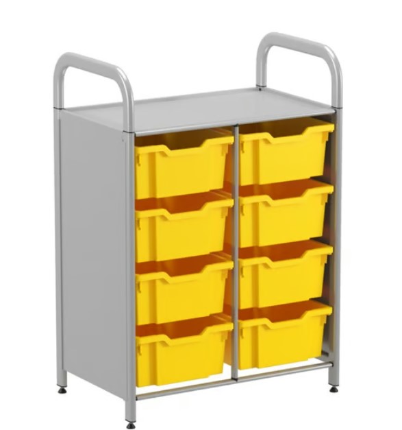 Whether for a small corner or an entire wall, Callero Custom is the storage solution that can be tailored to any needs and integrated into a space faster than other built-in customisable storage solutions. The modular system can be configured to create anything from a compact, cosy library to a full-height, comprehensive resource centre. Simply begin with a tall or low starter frame and then select any number of frames to build up or across – the possibilities are endless and the system can be extended to meet end-user needs. Mix and match tray units with shelving to provide a classroom learning area that can store or display everything learners might require for their lesson, bringing a sense of calm organisation to the learning space. The Callero Custom storage frame is unique in having a complete absence of sharp edges or angles, ensuring extra safety around children. It comes with StopSafe runners which further increase safety by ensuring that the trays can only be pulled out to a certain distance preventing accidents and injuries whilst promoting student independence. For high density, bespoke storage that takes up minimal learning space and is safe for the use of children, Callero Custom is the answer.