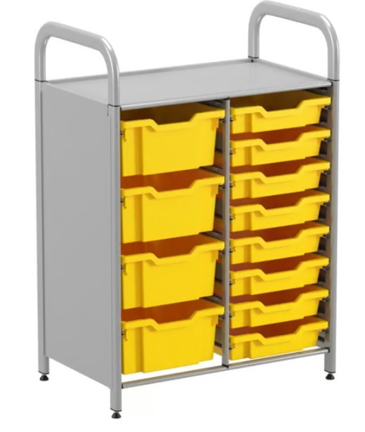 Whether for a small corner or an entire wall, Callero Custom is the storage solution that can be tailored to any needs and integrated into a space faster than other built-in customisable storage solutions. The modular system can be configured to create anything from a compact, cosy library to a full-height, comprehensive resource centre. Simply begin with a tall or low starter frame and then select any number of frames to build up or across – the possibilities are endless and the system can be extended to meet end-user needs. Mix and match tray units with shelving to provide a classroom learning area that can store or display everything learners might require for their lesson, bringing a sense of calm organisation to the learning space. The Callero Custom storage frame is unique in having a complete absence of sharp edges or angles, ensuring extra safety around children. It comes with StopSafe runners which further increase safety by ensuring that the trays can only be pulled out to a certain distance preventing accidents and injuries whilst promoting student independence. For high density, bespoke storage that takes up minimal learning space and is safe for the use of children, Callero Custom is the answer
