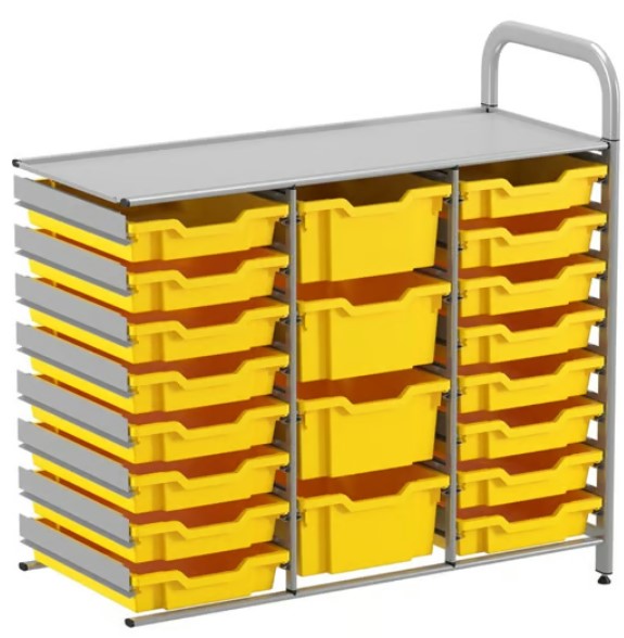 Whether for a small corner or an entire wall, Callero Custom is the storage solution that can be tailored to any needs and integrated into a space faster than other built-in customisable storage solutions. The modular system can be configured to create anything from a compact, cosy library to a full-height, comprehensive resource centre. Simply begin with a tall or low starter frame and then select any number of frames to build up or across – the possibilities are endless and the system can be extended to meet end-user needs. Mix and match tray units with shelving to provide a classroom learning area that can store or display everything learners might require for their lesson, bringing a sense of calm organisation to the learning space. The Callero Custom storage frame is unique in having a complete absence of sharp edges or angles, ensuring extra safety around children. It comes with StopSafe runners which further increase safety by ensuring that the trays can only be pulled out to a certain distance preventing accidents and injuries whilst promoting student independence. For high density, bespoke storage that takes up minimal learning space and is safe for the use of children, Callero Custom is the answer.