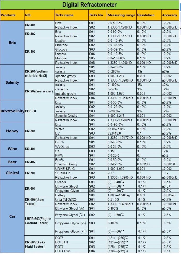 This model is used for measuring salinity of solution such as sodium chloride and refractive index of measured solution.