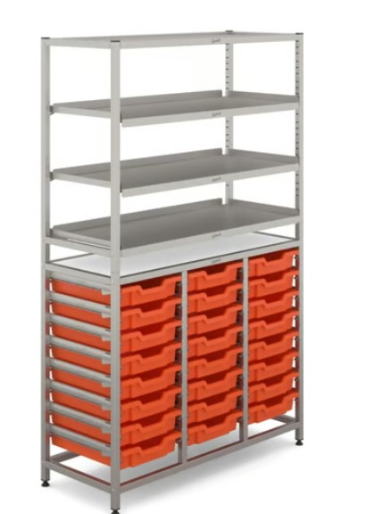 The Dynamis collection offers flexible, cost-effective storage solutions for any classroom. The collection is compatible with the iconic Gratnells tray range, providing high density storage on a small footprint to maximise learning space. Trays can be colour-coded for easy organisation and quick identification, helpful when teachers are setting up a lesson or when students are tidying away. For flexibility, the low and mid profile frame options come with both castors and feet, giving the option of making it either a static unit or a mobile trolley. The tall unit comes with wall-fixing brackets for safety and provides floor-to-ceiling storage space with the option to have additional trays for organisation, or open shelving to display anything from equipment as learning prompts, books to encourage reading or student work to promote self-esteem. All Dynamis products are now supplied with StopSafe runners, as featured in our premium Callero range. The ABS runners have a built-in stop for enhanced safety meaning trays can only be pulled out up to a certain point. The lower density runners, which can now be individually replaced if needed, allow for the Dynamis trolley to be flat-packed and shipped more cost-effectively and sustainably.