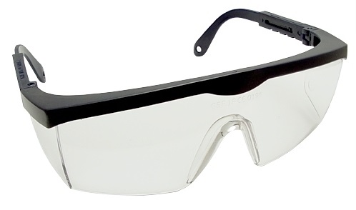 The safety glasses have integated side shields and adjustable stems to enable them to fit over prescription glasses. Not suitable for professional industrial use or situations involving harmful liquids
