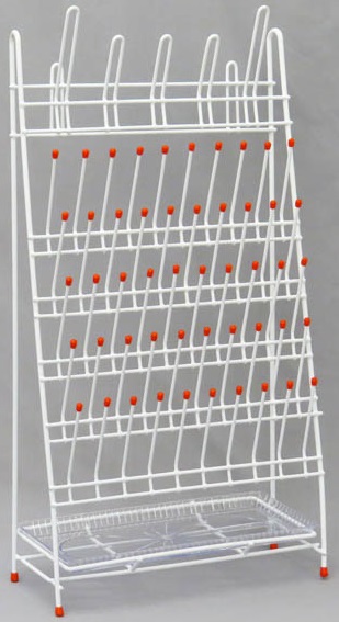 All purpose drying rack. Can be used to dry or store test tubes, beakers, flasks etc. It is self standing, but can also be wall mounted.
