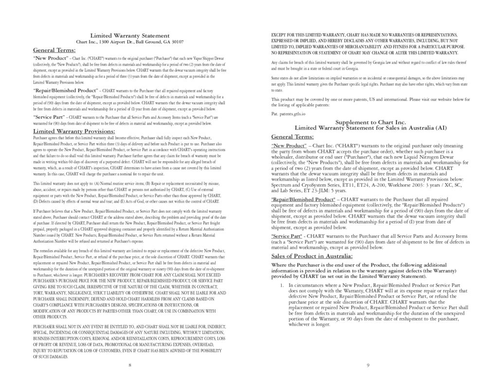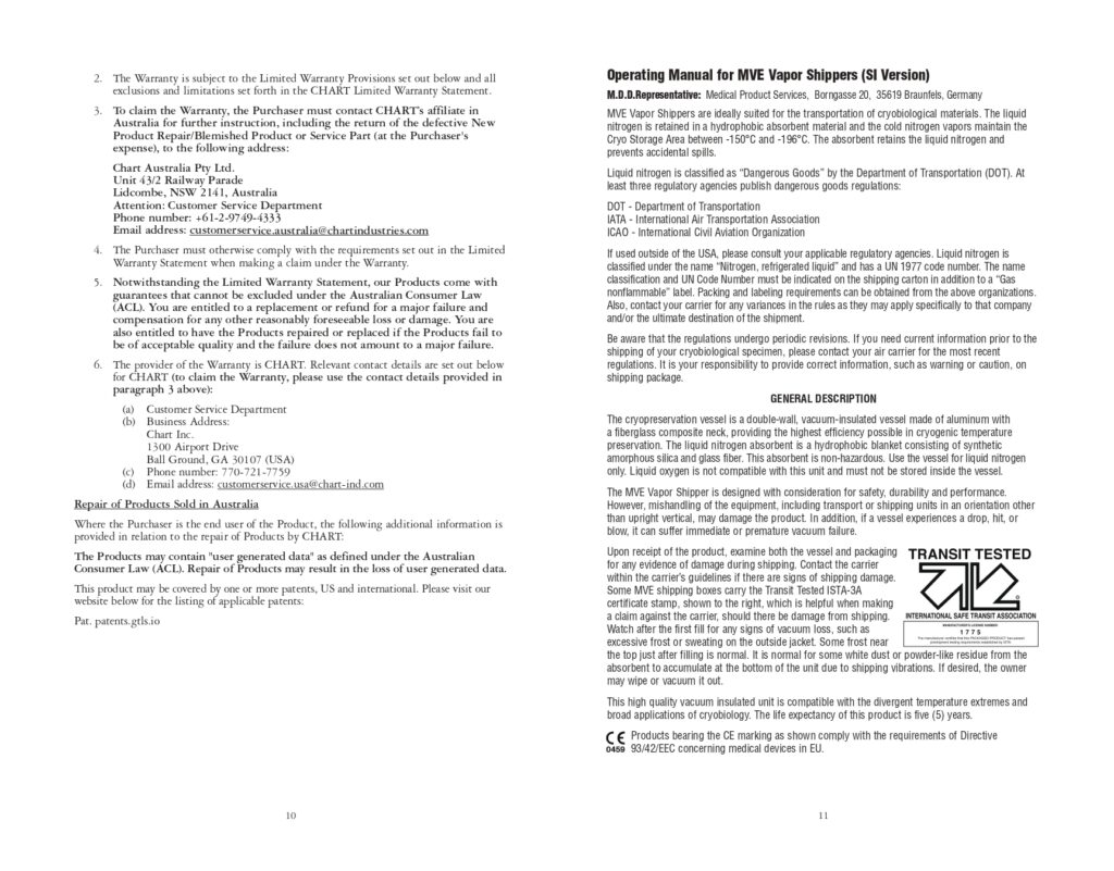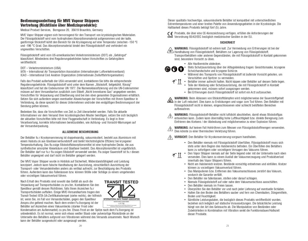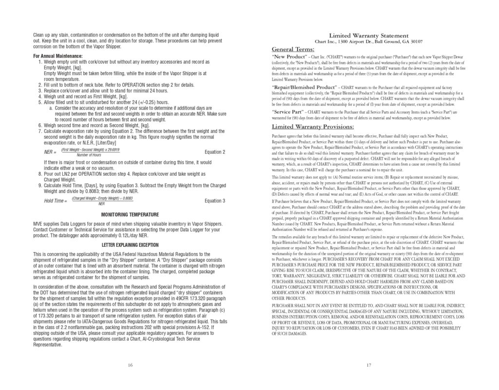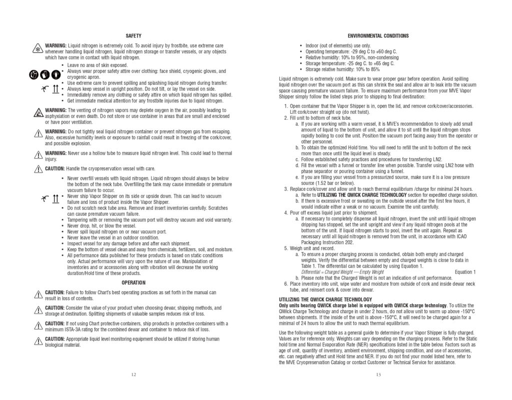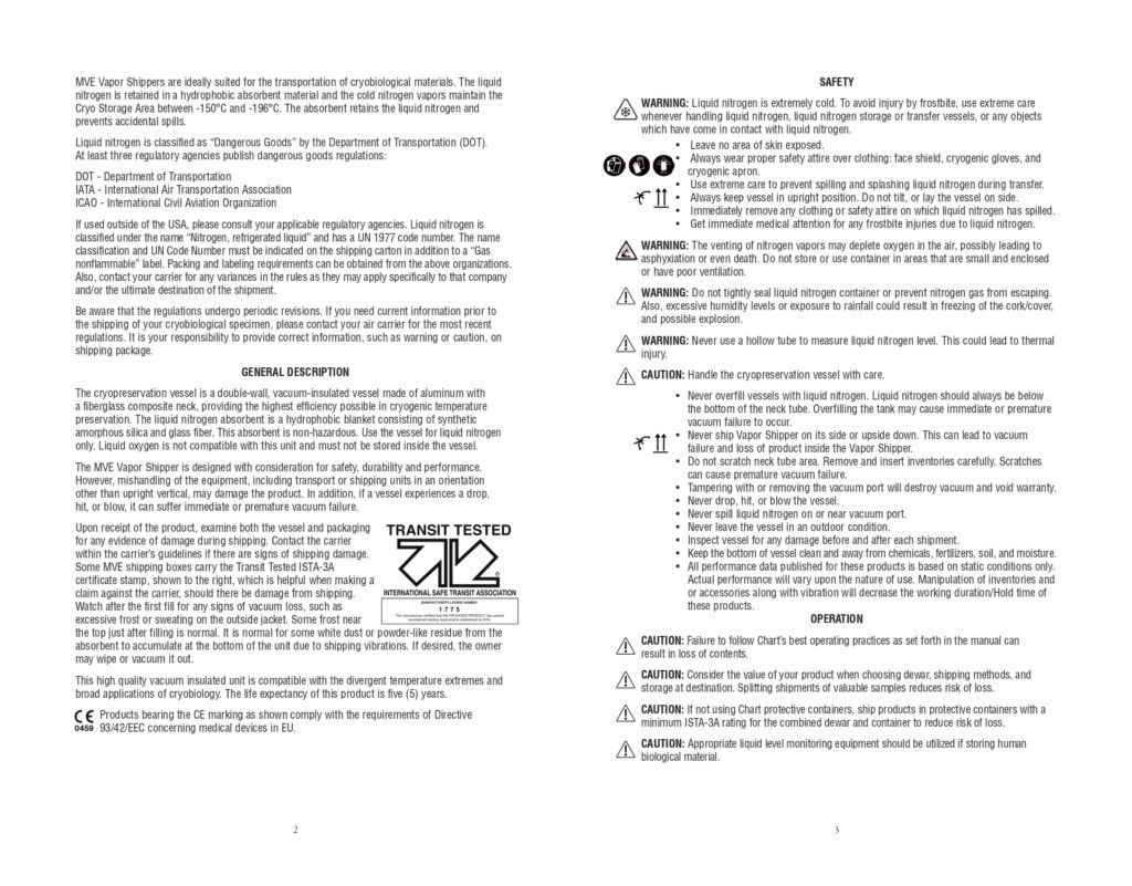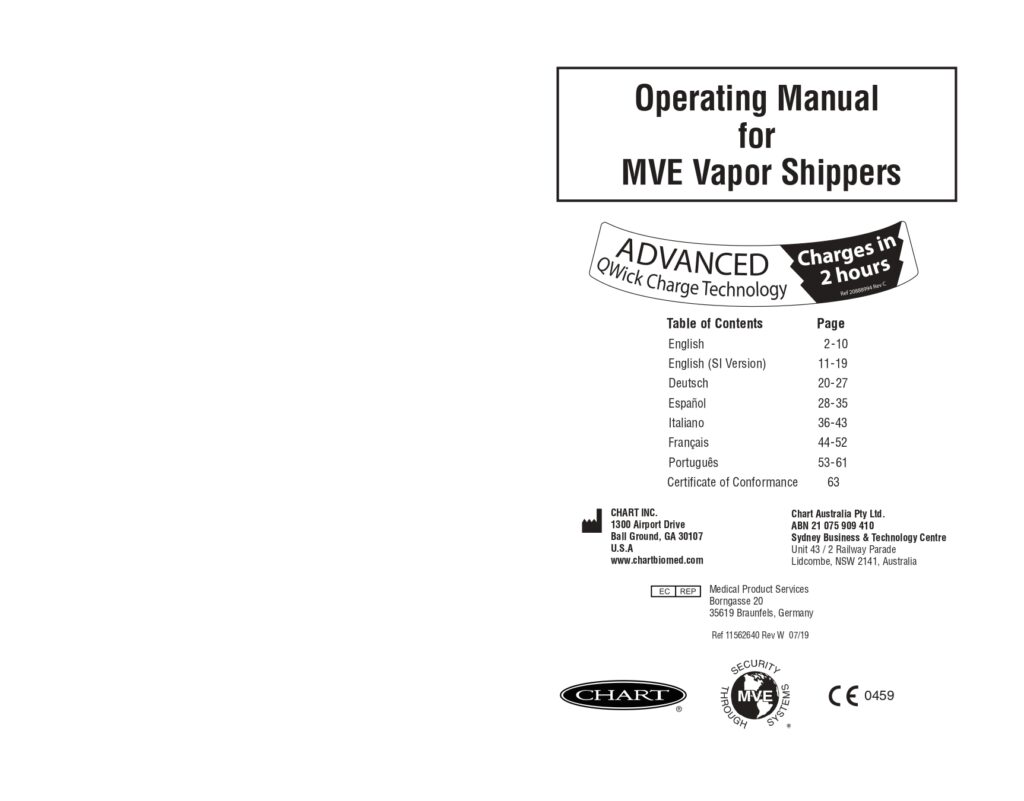 Manual & Certificate of Conformance, MCE Vapor Shippers