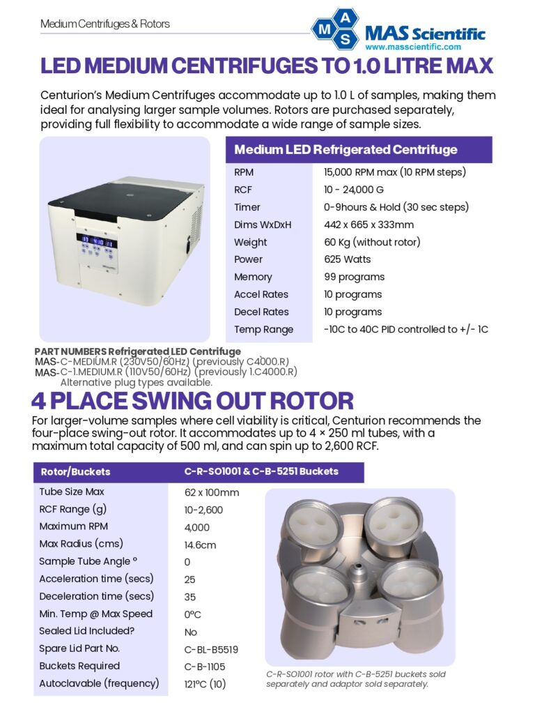 | RCF Range (g) : 10-2,600 |