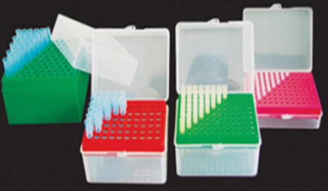 • All sizes up to 1000 μL available in 96-unit format • Dual function: hinged and push-on lid, simply rotate 180° to change closure method • Opening and closing with one hand. The clamping mechanism holds the tip-tray securely in the box • Transparent window for better all-round visual inspection • No deflection during tip loading. The tip-tray is fabricated from especially rigid PP • Usable with a partially loaded multichannel pipette. The rimless tip-tray border enables problem-free loading of individual pipette tips with multichannel instruments.