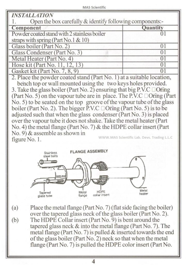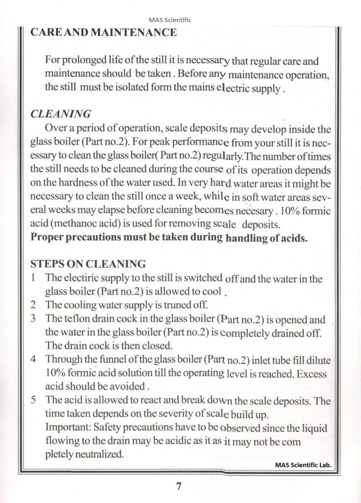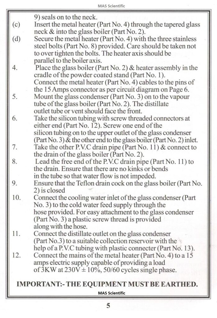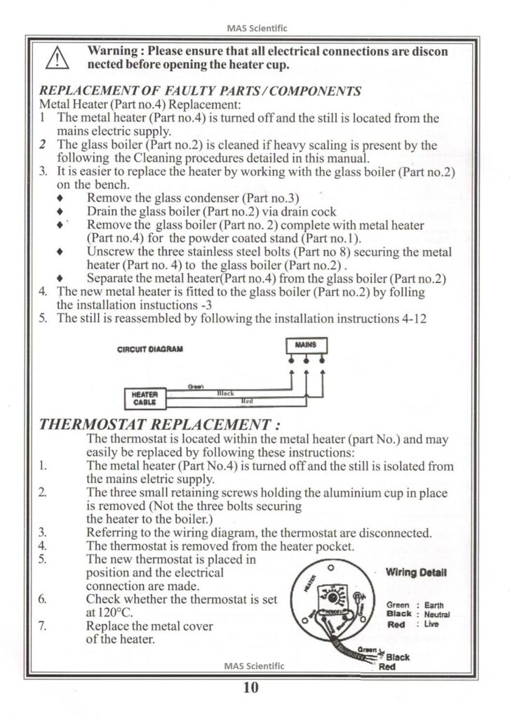 User Manuel Water Still- with Steel Heating Element – MAS 1139-4L